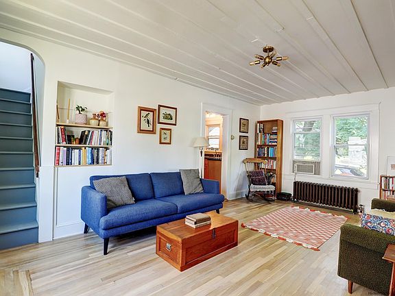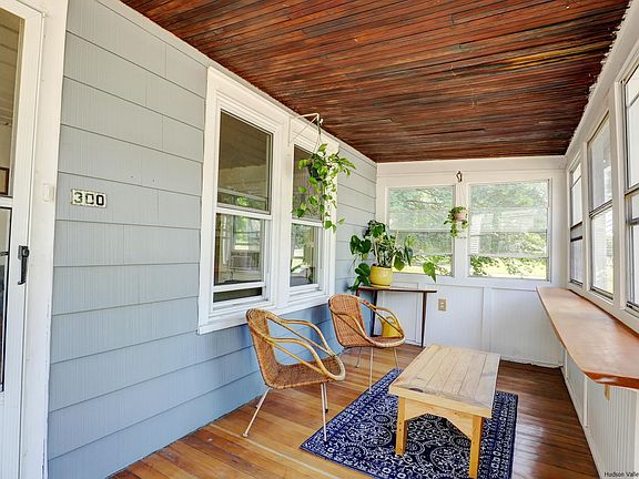A gem in the heart of Kingston where rustic Scandinavian Minimalism meets classic Arts and Crafts, with its own secret mini-forest. Enjoy serene sunny afternoons on the three-season porch and in the bright living room, with newly refinished floors of whitewashed oak. Stash your latest read in the bespoke book nook before climbing the stairs to the second floor. Upstairs you’ll find three cozy bedrooms, each with preserved original wood doors, plus a full bath. The main floor boasts a spacious eat-in kitchen with tons of cabinet space. Behind the kitchen you’ll find a large primary bedroom suite, with a wall of closets and its own bath. To reach the secluded back yard, walk down the driveway past the garage and up winding stone steps. Beyond the rock outcropping is a sunny glade surrounded by tall elms and white oak trees. There’s plenty of room to plant vegetables and flowers among the native mountain laurel and sassafras when not relaxing around a fire. An L-shaped shed at the back of the property awaits your vision: a yoga or writing studio, perhaps? The home has plenty of room for creativity, with a walk-up attic waiting to be utilized plus the garage, recently used as a workshop. Additionally, there is a spacious basement for laundry and plenty of storage. Heated by natural gas with classic radiators, this home has a 15 year-old roof and is on town water and sewer. It is a short walk to local classic ice cream shop Mickey’s Igloo and to Village Coffee and Goods, Kingston Brewing Co. and the Rail Trail, as well as all the restaurants, entertainment and outdoor activities Kingston has to offer. This charming move-in ready house is a dream.