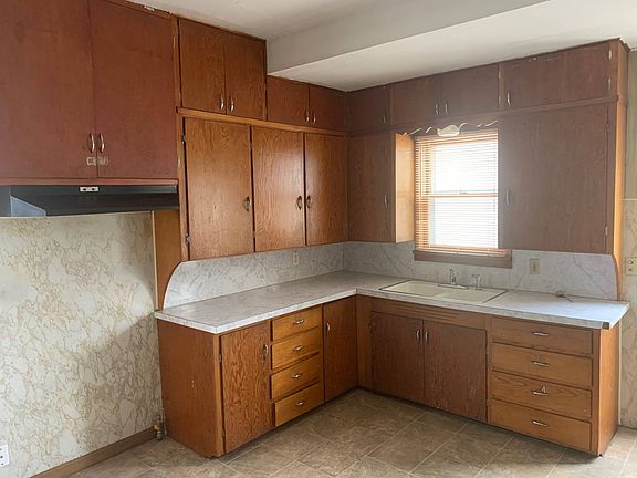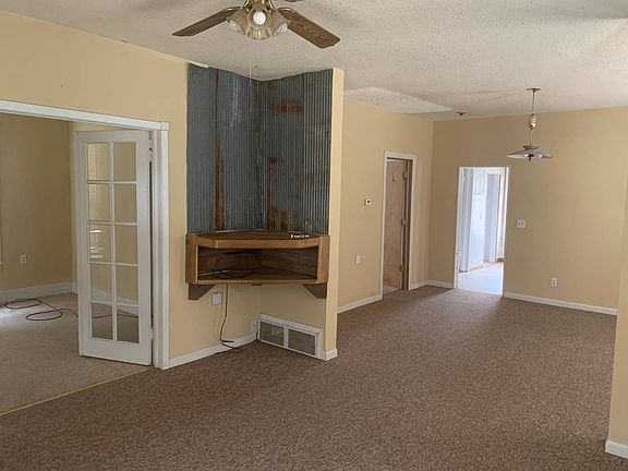 There's a big kitchen, living room-dining room, 2 bedrooms, 1 bath & utility room. C/H&A, new AC compressor by Dewey Simons. Large 24'X18' garage w/automatic door opener. Covered front porch, good metal siding & concrete drive-way. Big corner lot.