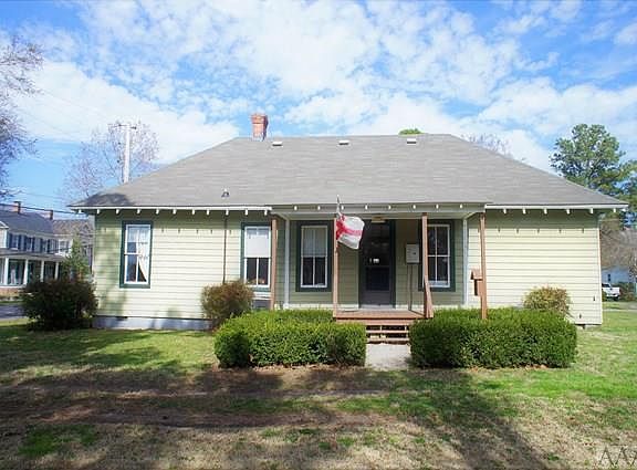 ALL ABOARD! Just steps away the waterfront, this unique property offers 10-foot beadboard ceilings, beautiful views, and a PRIME location. The lot was the home site of the principal author of the Constitution used by NC during the Revolution. This structure was originally the Suffolk & Carolina Railroad Depot, then relocated here. It served as a home for years, but is currently rented to a small church. The large room used as sanctuary would make a nice master suite or a wonderful family room.The garage has an attached storage room /workshop area. Buyers will want to update the kitchen/bath.