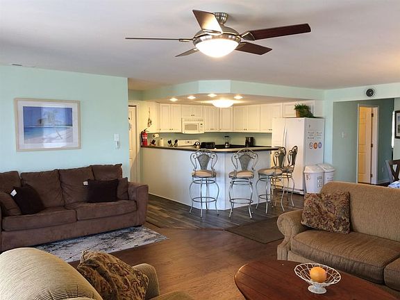Desirable location, just one block to beach and boardwalk! A oversized condo, 1693 SF, on a oversized, nicely landscaped yard. This incredible 3 bedroom, 2 bath condo is a must see. In the ground level has a large foyer, and a two car garage with one more car on out side driveway. At main level, a 4 panels patio door that leads your to a private, covered large balcony. A large kitchen has ample cabinet space, tons of counter space, matching appliances, and a breakfast bar. The dining room holds an 12 person table. The back half of the condo offers 3 spacious bedrooms 2 full bath and a laundry room. The Master bedroom has two quean beds with a walking closet, the 2nd bedroom has two full size beds, and 3rd bedroom has a quean bed. A small association with low HOA fees.