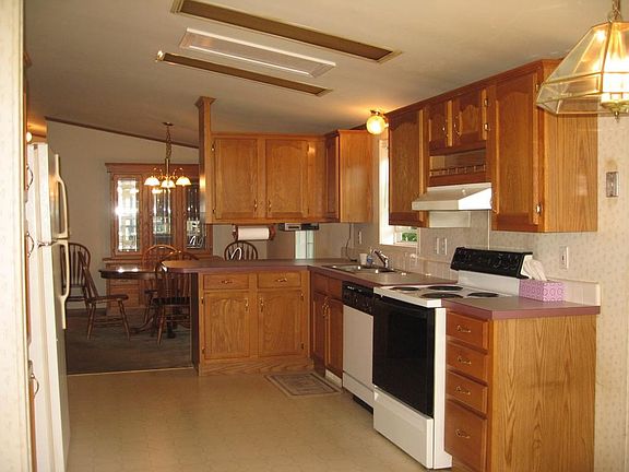 As the Ten Mile River meanders behind your home you will hear the water flowing and may see wild life on the other side of the river. Super location inside Waters Edge Estates, a 55+ Community is this double wide (28X56) mobile home. Warm and inviting front porch for friends and family to gather! Cabinet filled kitchen with dinette area and separate dining area open to carpeted living room with large window to let in morning sunlight. Master bedroom w/private full bath and 2 additional bedrooms located at far end of home. Washer/dryer closet located off kitchen. All new wood blinds accent windows. With over 1500 sq. ft, there is room for everyone! Large vinyl sided shed w/electricity. New Roof 2018. Quick closing available