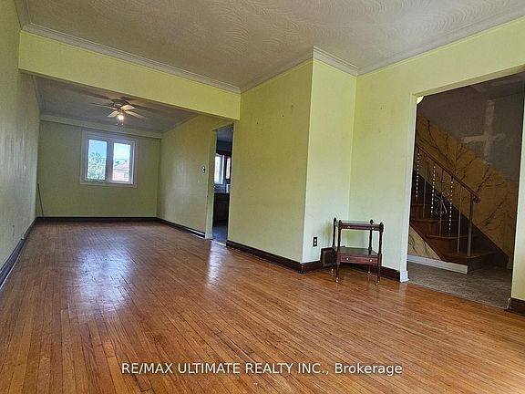 This detached home sits on an impressive lot measuring 25 by 118 feet. Built in 1961, it features a solid structure with a spacious oversized single garage and an additional parking space beside it, along with a private backyard. The main floor boasts an open-concept living and dining area, complete with crown molding and large windows that provide ample natural light. The eat-in kitchen overlooks the backyard, offering a pleasant view. An oak staircase leads to the second floor, where you'll find an oversized primary bedroom equipped with a wall-to-wall window and a double closet. There are also two more generous bedrooms on this level. The finished basement has a separate entrance and includes a large recreation room with a wood fireplace, an open-concept kitchenette, and a full bathroom. This property is ready for your personal touches, but you can move in right away! It's conveniently located close to trendy St. Clair West, featuring a variety of stylish restaurants and shops.