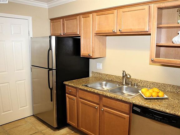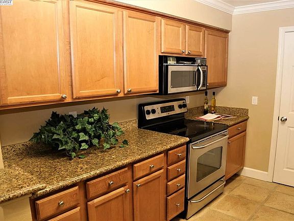 Remodeled Upstairs End Unit with Vaulted Ceilings, Granite Slab Counters, Crown Molding and Upgraded Shower/Tub. Private Balcony, Inside Laundry, Wood Burning Fireplace and Window Treatments throughout. Resort-Style Gated Community with Swimming Pool & Spa, Fitness Center, Tennis Courts and Walking Trail. Easy Access to the new San Ramon City Center, Community Park, Shopping, Club Sport, Golf, 680 and Excellent San Ramon Schools. FHA Approved and No Rental Restrictions. Refrigerator, Washer & Dryer Included!