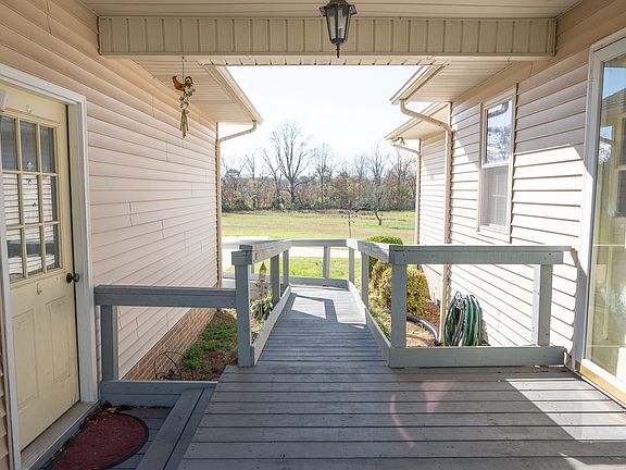 HUGE PRICE IMPROVEMENT!! MOTIVATED SELLER!! This spacious, handicapped-accessible 3-bedroom, 2-bathroom home sits privately on 5 gorgeous acres at the end of a quiet dead-end road in a nice neighborhood just on the outskirts of Lawrenceburg. Home measures approx. 1, 816 sq ft of comfortable living space featuring three generously sized bedrooms, and a spacious living room adorned with elegant columns, along with a vaulted ceiling enriched with exposed wooden wood beams. The country-style kitchen boasts custom cabinets and gorgeous granite counter-tops, perfect for culinary enthusiasts. Additional highlights include an attached 2-car garage, a detached workshop, and a storage building, ensuring you have all the space you need. Enjoy the convenience of being less than 5 minutes from downtown Lawrenceburg, with easy access to schools, shopping, and medical facilities. The location of this home, coupled with the 5 open acres provides a safe and inviting space for children to play and for family gatherings. Embrace the peaceful lifestyle you've always wanted—this is the perfect place to call home!