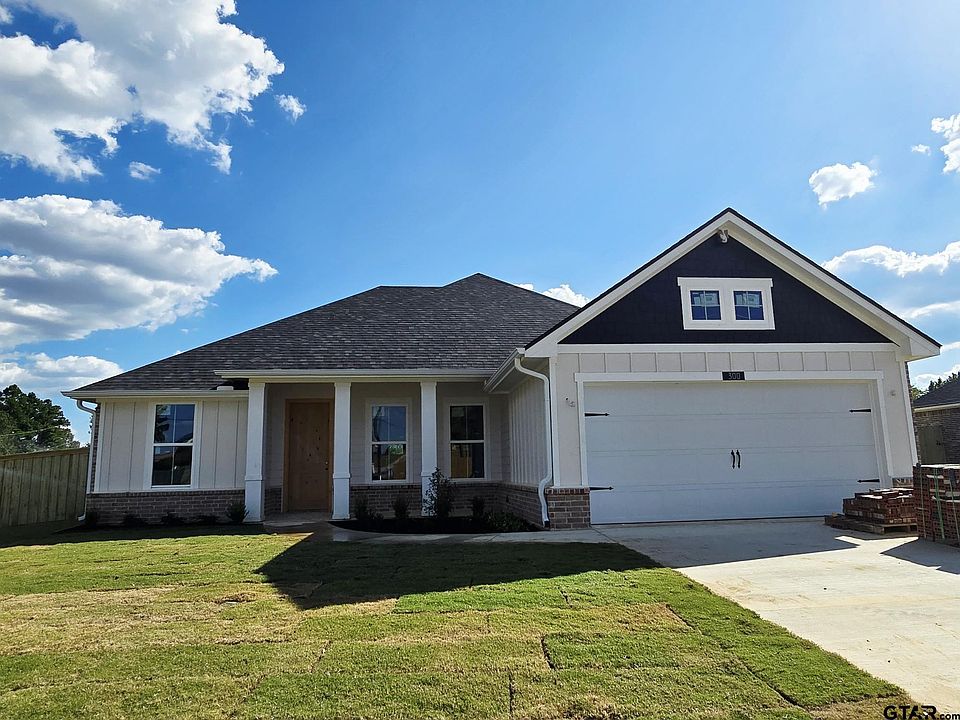 Move in ready by Halloween! This 3 bedroom, 2 bath home is a top-rated energy efficient home offering a comfortable open floor plan with lots of natural light, premium vinyl plank floors, stainless steel electric appliances, and quartz counters. This home also features a walk-in tile shower in the master bath, Smart Home features throughout, and an electric fireplace to set the mood for any occasion. The exterior includes full Bermuda sodded yard, a digital sprinkler system, full privacy fence, accented front elevation lighting, decorative front elevation landscaping, and much more! If you are looking for quality, style, and value, the destination is definitely Eagle Meadows. Ideally located near US-69 & IH-20, Eagle Meadows offers easy access to acclaimed Lindale schools, and many dining and shopping options. ***Interior pictures are examples of finishes***