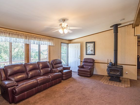 Lovely home with an open floor plan, wood burning stove, newer roof, flooring, paint, windows, remodeled kitchen and a large deck! This beautiful property offers spectacular views of the Callahans and with fenced pastures and garden areas, fruit trees, a seasonal creek, greenhouse and detached 2 car garage! 24'x24' shop w/ office & guest room.