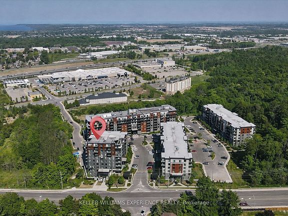 Welcome to this bright and private 2 bedroom plus den condo, offering one of the most sought-after views in the complex. This exceptional unit is tucked away with all windows overlooking a serene forest backdrop, providing complete privacy with no direct views of other condo units, while still enjoying beautiful city views of Barrie. Ideally located in the heart of Barrie, this condo is within walking distance to grocery stores, hardware stores, and everyday conveniences, while also just minutes to Highway 400 making it an excellent choice for commuters. The thoughtfully designed layout includes a versatile den, ideal for a dining room, home office or additional living space. Brand new flooring and fresh paint completed in 2025 enhance the unit with a clean, updated look throughout. Backing directly onto environmentally protected land, the condo offers a unique connection to nature with access to nearby walking trails, boardwalks, and scenic lookouts creating a peaceful, natural retreat right at your doorstep. The spacious primary bedroom features an upgraded ensuite bathroom, providing a comfortable space to unwind at the end of the day. Step outside to a private covered balcony that permits BBQ use, perfect for enjoying the outdoors in any season. Additional conveniences include underground parking, a storage locker, and access to building amenities, all while enjoying truly maintenance-free living with no snow shovelling. Perfect for downsizers seeking a low-maintenance lifestyle, as well as first time buyers and investors, this private, well located condo offers the ideal blend of nature, walkable amenities, and city convenience.