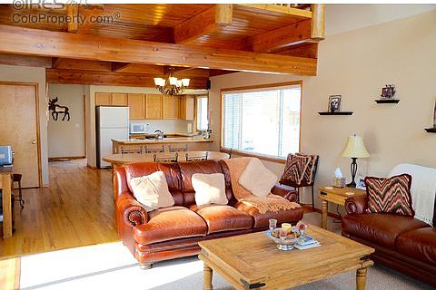 This fully furnished, beautiful end-unit townhome is located on Fall River and is a short walk to downtown Estes Park. This home features 3 bedrooms, 3 bathrooms, gorgeous living space with hardwood floors, gas fireplace, and plenty of natural light, kitchen with breakfast bar, main floor master suite, and attached 2 car garage. Upstairs bonus room/loft and office with river view. Live in the mountains with the best wild neighbors (deer and elk!). Don't miss out on this lovely mountain retreat!