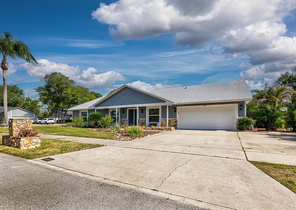 Nicely maintained pool home on a large fenced corner lot! Columbus Harbour is a beautiful lakefront community situated directly on Fairy Lake. Enjoy the lake with gated access for boating/skiing and fishing; picnic pavilion/recreation building overlooks lake. Tennis court/basketball court combo and small park area also available to Columbus Harbour residents. Very Spacious home with large bedrooms and plenty of closet storage space! Both Bathrooms have been updated. Lovely vinyl plank wood floors throughout. Impressive floor to ceiling stone fireplace in family room with custom built bookshelves on both sides is perfect for family game night. Skylight in vaulted ceiling of family room makes the room light and bright. Great home for entertaining as pool can be seen from eat-in kitchen area, living & family room, master bedroom & rear guest bedroom. New Roof in 2021; New HVAC in 2023; New Hurricane Proof Windows in 2020. Modern black/white tile in kitchen area. All appliances stay including range w/convection oven, microwave, dishwasher, refrigerator, washer and dryer. Two car garage with side entry door. Covered patio & large pool area has beautiful light terracotta colored brick pavers. Extra wide driveway allows for three cars. Also there is a large parking pad located on right side of home (behind fence) which would be a great area for storage of a boat or temporary RV.