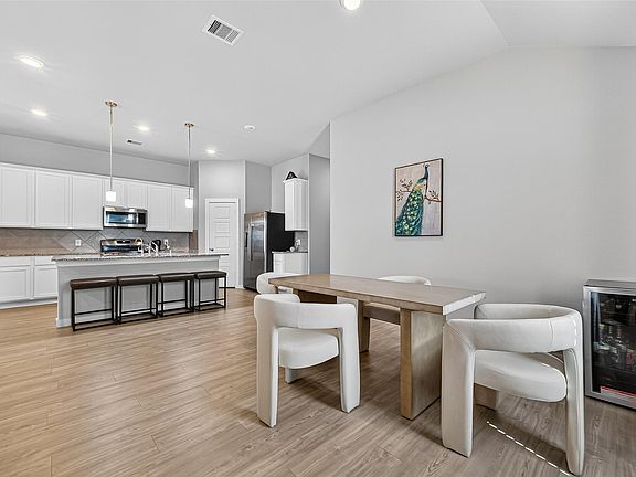 Welcome to the charming Magnolia Ridge community! This spacious home boasts 3 bedrooms, a full bath, and a utility room. Unique porcelain tile in one bedroom overlooks the front yard. The kitchen features an island, perfect for entertaining. Natural light floods the primary bedroom with a bay window and large walk-in closet. Enjoy family dinners on the covered patio with a ceiling fan and gas line hook up, overlooking a greenbelt and jogging trails. Solar panels included for energy efficiency. Don't miss out on this peaceful cul-de-sac property with no back neighbors! Refrigerator and washer and dryer included!
