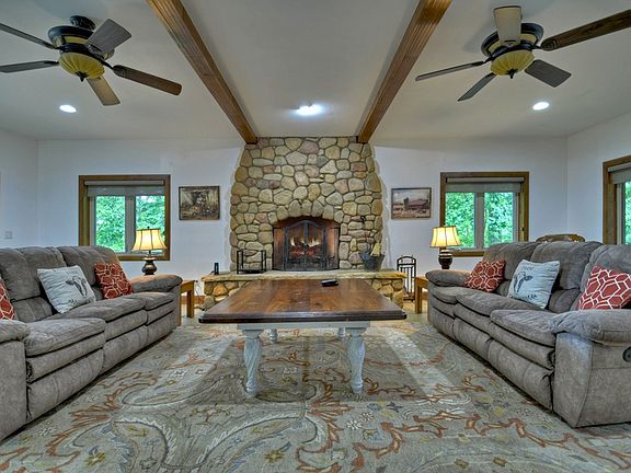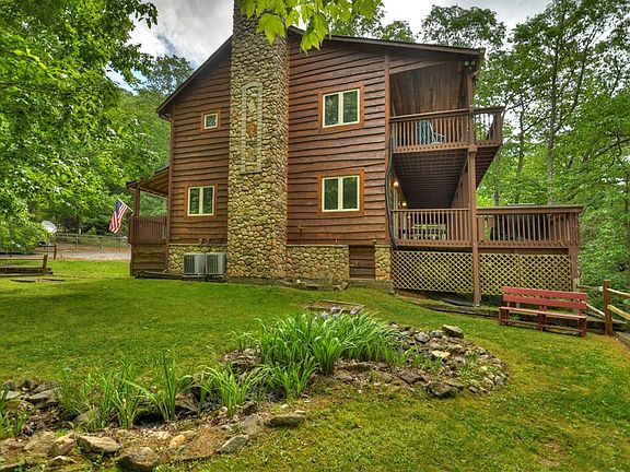 Good Gracious....this "Elegantly Furnished" Family Farmhouse is SPACIOUS!!! Formally a Successful Bed & Breakfast designed for maximum comfort in the perfect location for mountain adventures. Thousands of National Forest Acres to Explore, White Water Rafting, Hiking, Tubing, Zip Lining, Kayaking etc). Beautiful Long Range Mtn View Overlooking the USFS. Adirondack "LIVE EDGE" Siding w/a "River Slick" Foundation & Custom Rock Chimney. Double Entry doors open up to almost 1600 Sq ft of OPEN SPACE separated by a Central Split Staircase. Kitchen/Dining on One Side & Huge Gathering Room on the other. Kitchen features a Stone Archway wrapping the Range (w/Pot Filler), Huge 6-Panel Fixed "Stained Glass" Window, Granite Countertops, Farm Sink, (2) Pantries, Entertainment Island (seating for 4) & Custom Cabinets (w/ matching Refrigerator). Expansive Dining Area large enough for 10+ Seating. Gathering Rm features a Signature "Riverslick" Wood-Buring Fireplace w/Raised Hearth, 70" TV & Double Door access to Covered Back Porch. Main Level Master also features direct access to Porch & Full Bath w/Full Tile Shower, Wainscoting w/Custom Tile Accents & Fixed Stain Glass Window. Upper Level features 3 Bdrms w/Direct Access to Covered Porch (w/Hot Tub) plus a Nursery/Office & a Laundry Rm... also an Open Loft/Landing to gather outside Guest Bdrms. Large Walk-in Closets & High End Tile Baths (all FULL Tile Showers & Tile Wainscoting w/Accents) Upper Master features Trey Ceiling, Dual Vanities, Bidet & 10' Full Tile Shower w/Seat & 4 Shower Heads. Quality Solid Core Interior Raised Panel Doors. Fenced in Area for Fur Babies, Koi Pond, Firepit, Horseshoes & Many Raised Flower Boxes. 20X25 Detached Garage & Workshop plus a 10X12 Storage Shed on almost 4 Acres. Quality "Crank-Out" Vinyl-Clad Windows. Many Area Accent Rugs & Quality Artwork. Plenty of Tile Floors Thru-Out