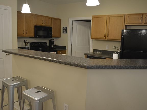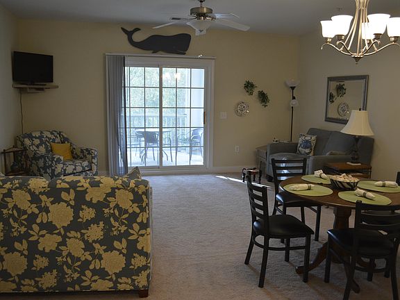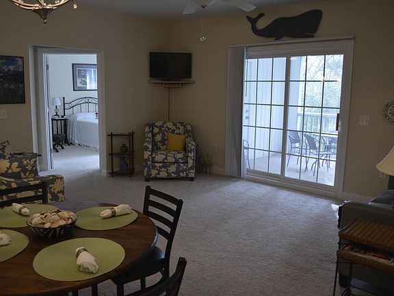 Pristine 3 bedroom furnished end unit condo within minutes to beautiful Topsail Island beaches. Enjoy the convenience of your fully applianced kitchen with an island and plenty of counter space. Well designed with an open kitchen, dining and family room. Master with private bathroom and walk-in closet is nestled on one side with two bedrooms and a shared full bathroom on the other side. Sliding doors from the family room lead onto the screened balcony with storage closet, also an open balcony overlooking a peaceful wooded area. Complex elevator for added convenience. Community pool, clubhouse, fitness center and playground. Walking distance to shopping and restaurants.