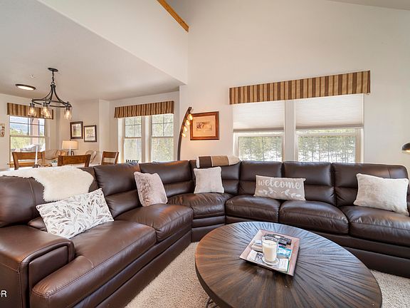 Beautiful 2 bedroom plus loft/3 bath END unit! Private location, views of mountains and more. Well taken care of unit which comes fully furnished and ready for your family! Features include 2 levels-top floor, large great room to dining on main level, granite countertops, gas hot water baseboard heat, gas fireplace, washer/dryer, newer furnishings and a large tandem garage with lots of storage! This one has it all! Easy to show and ready to go! Bring your skis, bikes and toys and enjoy mountain living!