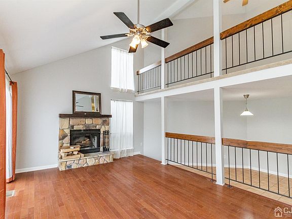 Live in luxury at the Meadows! A modern home w/trendy designs & updated fixtures all through. Step right in to the sun soaked LR where high vaulted ceilings open up the space completely. Natural light streams through the sliders that lead to the open front porch & views of the community. The stone F/P is rustic & contemporary-plus its the perfect place to cozy up to in the chilly Fall season! DR & EIK flow naturally w/one another making for an accessible floor plan ideal for entertaining. There are sliders in the Kitchen that lead to a private fenced patio. All newer applainces here, too! Half bath on this lvl is sleek & chic. Guest & Ensuite Bath also w/updates & stylish finishes. Both BRs are a great size w/neutral tones-easy to customize. Finished basement is a versatile space w/endless possibilities. HVAC & Garage door only 1 year. HWH is new as well! Association covers maintance on roof,patio,siding,deck & more. Very close to the community pool & local amentities, too! A MUST SEE!