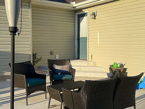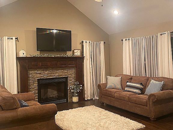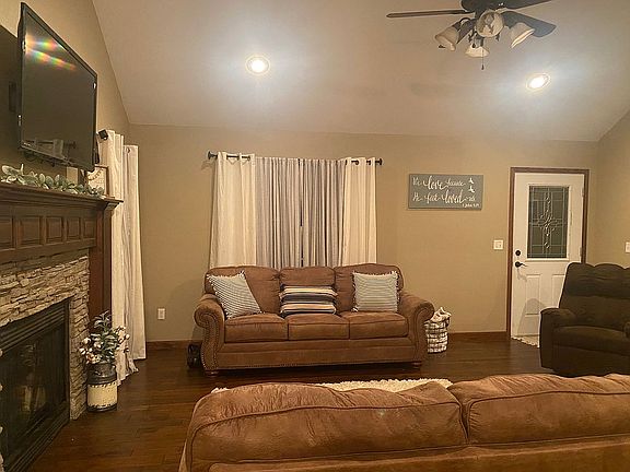 Custom built home with custom fireplace, hardwood flooring throughout the living and dining room. Nice concrete patio added in September 2021. This house is in a great neighborhood within walking distance of the schools, has an attached two car Garage, large laundry room, big walk-in closet in the master bedroom with motion lights.