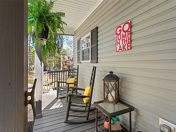 Experience the charm of this stunning Lakehouse, where perfection meets tranquility. As you step through the front door, the breathtaking view of the lake greets you. This beautifully decorated home features five spacious bedrooms and three full baths, all designed for low maintenance and energy efficiency, nestled on a peaceful street just minutes from I-85. Built a decade ago, it serves as an ideal retreat from the daily grind. Enjoy evenings by the fire pit, listening to the soothing sounds of nature, or spend your days fishing for bass and crappie from the dock. You can paddleboard in the serene cove or take a quick ride on your jet ski to Harbor Light Marina for a delightful meal. Located at Channel Marker T-61, this property offers endless opportunities for lake enjoyment. Perfect for entertaining large families or as a potential VRBO, the home also includes the option to purchase an adjacent lot, complete with a second dock, storage building, and a delightful surprise—a she-shed, man cave, or kids' hideaway. This extra space could even serve as a home office if needed. Don’t hesitate; come see this lovely Lakehouse and all its wonderful features! THE LOT to the LEFT of this home is For Sale with first right of refusal to the Buyer of 300 Gladys Circle. If the Buyer chooses to purchase, the cost will be $79,000. This Lot has a Swim Dock and Currently has the Gold Cart Garage and Part of the "She Shed" encroaching. The sellers will move the Buildings if the Buyer of the homes does not want to purchase the Lot. PLEASE NOTE: THE SECOND LOT TO THE LEFT OF THE HOME SHOWN IN THE PHOTOS IS NOT PART OF THIS LISTING. IT CAN BE PURCHASED FOR $79,900 AND WOULD INCLUDE THE PLATFORM DOCK.