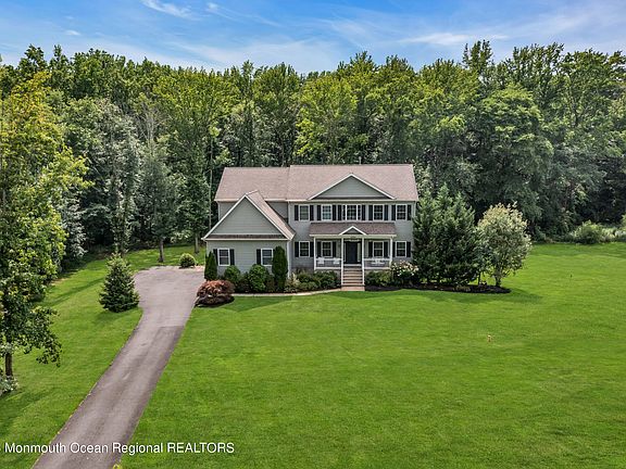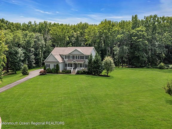 Serenity awaits you in this northern Manalapan 5 bedroom, 5 bathroom, side entry garage & full finished walk-out basement custom colonial. This private location is in the heart of the cul-de-sac. Porch entry leads to a 2 story foyer. Office & Bedroom located on the first level. 2 story spacious family room overlooks the amazing property & is open to kitchen which features a center island, all stainless steel appliances & pantry. 2nd flr offers a master suite w/master bathroom, double sinks, tub, stall shower & walk-in closet. 2 bedrooms w/jack & jill bathroom & 3 bedroom features a private bathroom. Spectacular finished  basement w/kitchenette, full bathroom, family room, separate room & storage room complete this home. French doors lead to the backyard ready for the yard of your dreams Sliding glass doors off the kitchen lead to a spacious deck w/stairs to  stone patio & beautiful yard. This home awaits its new owners to enjoy all it has to offer.