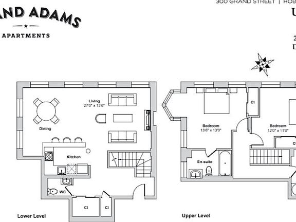 2nd Month Free on a 12 Month Lease. *Advertised rent is net effective based on current concession of one month free on a 12 month lease. Actual rent $5250* Photos of a staged unit in the building, not of actual unit. Live the life you have always wanted at The Grand Adams in Hoboken, New Jersey in this newly renovated 2 bed, 2.5 bath split-level loft just steps from the bustling nightlife, boutique shops and extensive dining options along famed Washington Street. Units feature Expansive Living Space, Gorgeous Views of Hoboken and Manhattan, Modern Finishes, Gourmet Kitchen, and Ample Closet Space. 2 shared outdoor courtyards provide a tranquil retreat. 2nd bedroom is more the size of a den but has window and closet. The Grand Adams offers you the very best in contemporary apartment living all just minutes away from Interstate 78, the Holland Tunnel and the New Jersey Turnpike. For those looking for an easy commute to New York City, the property is just a short walk to the Hoboken PATH Station, which provides a brief 8-minute subway ride to both Midtown and Lower Manhattan.