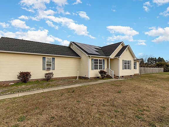 Ranch home with expansive curb appeal/fenced backyard. Long driveway for multiple vehicles. Oversized two car side load garage/ample work space. 2 storage buildings in rear. Features DR with chair rails; family room w/gas log FP; vaulted ceilings. Laundry area w/overhead cabinets. Large breakfast nook off kitchen. master bedroom with walk in closet and upgraded bathroom. Secondary bath also newly upgraded. Two sunrooms. 1 is 4 season and the other is 3. Solar panels.