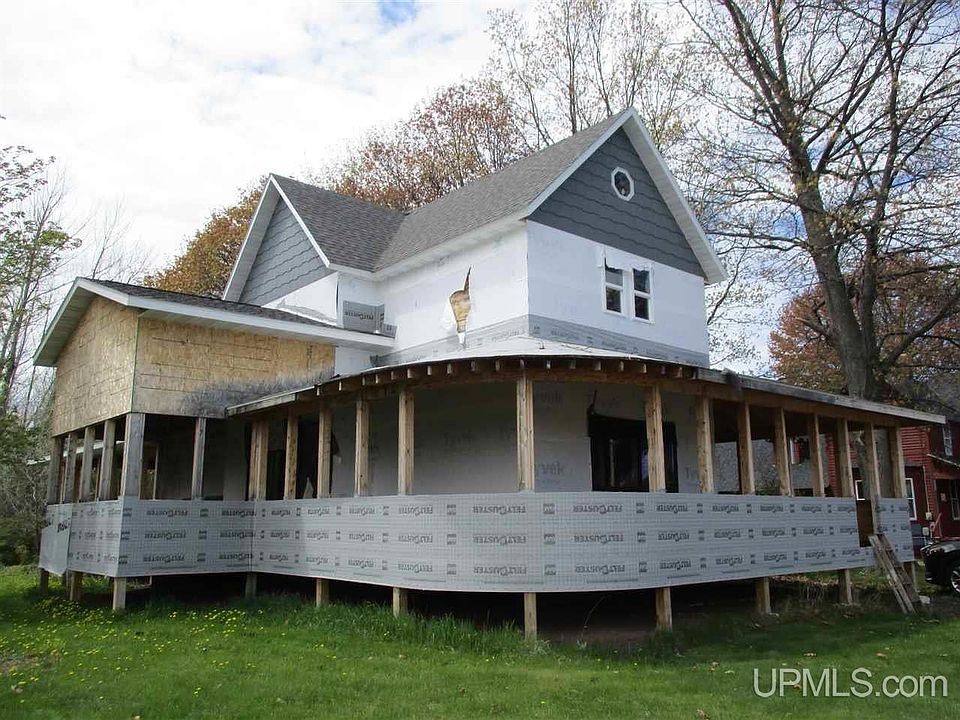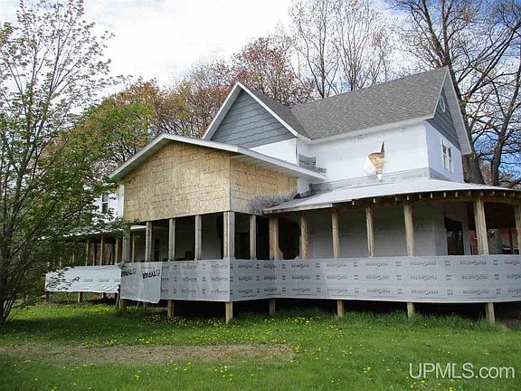 A PROJECT NEEDING YOUR EFFORTS TO COMPLETE.. this Victorian home has a deep history in the Village of Ontonagon, having been built in 1898, a showplace in its day. It has represented a labor of love by the current owners....who used their talent and work ethic to begin the restoration. They took it down to the studs, as the walls are complete stripped and ready for plumbing and electrical to be run; the roof was lifted and new shingles installed; the wrap-around deck, a stunning feature, is completely new...you will be impressed by the talent exhibited in this re-construction; the master bedroom suite is a completely new area with a room designed for the hot tub; the basement is studded all the way around; the foundation is good with no sagging or sinking mortar and is solid ...all of this in the charming Village of Ontonagon....steps from the downtown area with shops, restaurants, a Theater for the Performing Arts, and blocks to the sandy beach of Lake Superior......and you can walk to the Ontonagon River also for fishing..and 19 mi from the Porcupine Mt. State Park, affectionately known as The Porkies...so plan to enjoy the project completion resulting in your new lifestyle home, truly an historic gem ..the yard is large and lovely...and across from the old high school/grade school, also a part of the history of the community, as the high school was built in 1912... while the owners created their idea of the floor plan, you are free to follow your own ideas...there is a beautiful slider door from dining room to the screened-in porch...a third bedroom could fit into the design...... .
