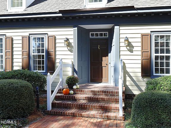 Take a step into this traditional 1977 Williamsburg style home perched on 1.3 acres in desirable Knollwood Heights. This immaculate, well-maintained home features a beautiful formal dining room with detailed dentil moulding, a formal living room with a fireplace, a main level study or office with a built-in wet bar with black walnut cabinetry and a large cozy family room off of the kitchen with a gas fireplace. Oak floors warm the foyer, dining room, living room and office. The kitchen is equipped with stunning cherry wood cabinetry and a natural gas cooktop. Off of the kitchen you'll find an all-season room with views of the large private lot and spacious brick patio. Upstairs there are four sizeable bedrooms including a primary bedroom and bath. The other bedrooms share a hall bath. A large upstairs laundry room overlooks the wooded back yard. There's also plenty of storage in the floored attic and both a front and back stairwell provide access to the upstairs. This home is just steps away from Pine Needles Golf Course. Pine Needles Golf course is an 18 hole Donald Ross design that has drawn pros nationwide and continues to host some of the game's most prestigious tournaments, most recently hosting its 4th U.S. Women's Open Championship in 2022. Roof replaced in 2014, 3729 square feet, Natural Gas, heat pump for upstairs and a hybrid for downstairs (gas furnace and electric heat pump). HVAC service agreement is with Comfort Services. Termite warranty with Terminix.