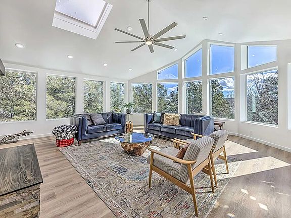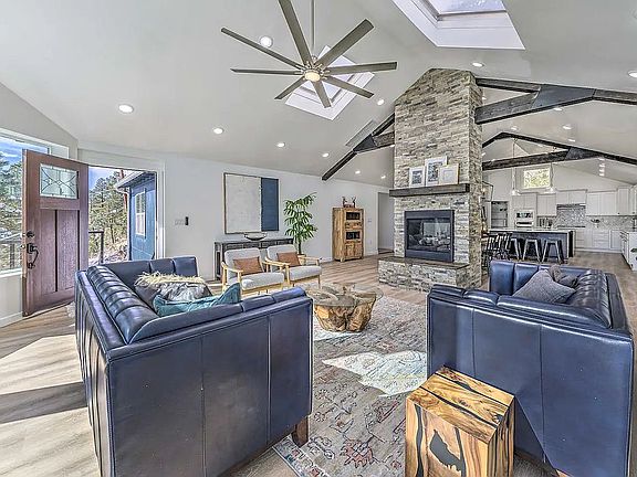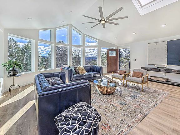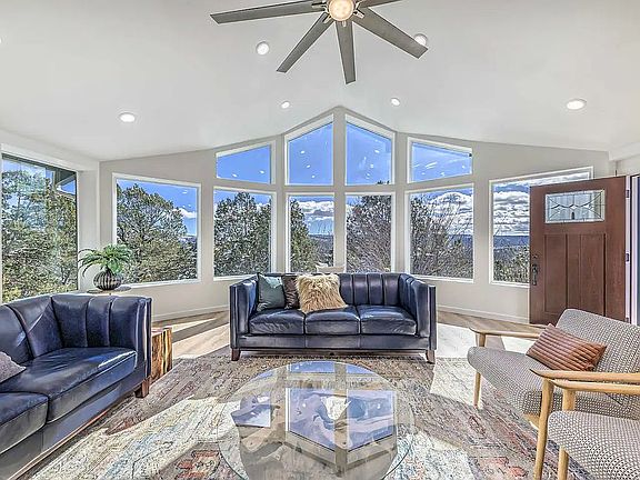 Welcome to your dream retreat at 300 Guadalupe Street, nestled in the heart of Ruidoso with breathtaking views of Ruidoso with quick adjacent access to Cedar Creek Forest Service Land. This fully furnished and professionally decorated home offers unparalleled comfort and luxury. All furnishings, decor, appliances, linens, kitchenware, towels, etc. will convey with the sale. (This is a 100% turn-key operation if Airbnb is desired) Step inside to discover a spacious layout featuring every modern convenience. The upper floor boasts a double-sided gas fireplace, enhancing both the living room and dining area. The kitchen is a chef's delight with two islands, ample storage, and a large pantry. Stainless steel appliances complement the granite countertops, making meal preparation a joy. A beautifully planned front room offers 14 large windows that give breathtaking panoramic views of the village of Ruidoso. On the same floor, enjoy the comfort of three large bedrooms, each furnished with a king bed for ultimate relaxation. The two-zone heating and air conditioning system ensures personalized comfort, allowing separate temperature control for the bedrooms and main living areas. Every detail has been considered, from wide doors to ensure accessibility, a 2 showerhead plus rainshower configuration in the master bathroom to cast iron tubs with tile surrounds in the second and third bathrooms. Additional highlights include a tankless water heater, water softener, and fully insulated walls throughout, providing efficiency and tranquility. The home features two sets of washers and dryers, including a set conveniently located in the master bathroom. Downstairs is a beautifully decorated room that currently is set up for movie nights, a kid's corner, and 3 bunkbeds for additional guests. The new owners can easily convert the space into 2 or 3 additional bedrooms with minimal effort if desired. Outside, the covered patio offers a perfect spot to unwind and take in the fresh mountain breeze. Soon to be installed, a hot tub will provide relaxation under the starlit skies of Ruidoso. For practicality, the property includes a two-car garage and ample driveway space for guests. Located on a peaceful street, yet close to the vibrant attractions of Ruidoso, this home combines serenity with convenience. 2 minutes from Albertsons, just 5 minutes from Midtown Shopping. Don't miss your chance to own this exceptional property offering luxury living and unparalleled views in Ruidoso. Schedule your private tour today and make 300 Guadalupe Street your new address for sophisticated mountain living. Realtors representing well-qualified buyers are welcome. Please add your desired commission to the advertised purchase price when submitting offers.