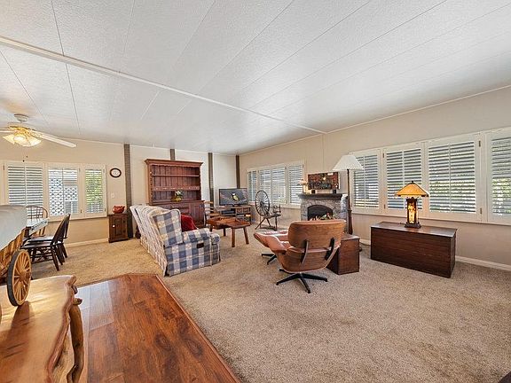 Sought after Rancho Benicia Senior Park!! Don't miss out on this well maintained 2/BED, 2/BATH home with updated laminate flooring, interior paint and plantation shutters. Spacious living room with separate dining area and built in cabinet. Updated kitchen island with bar-top seating and extra storage space, gas stove with vent hood, updated appliances and laminate counters. Family room off kitchen with wet bar and slider that leads to nice front porch. Large primary bedroom with built drawers and plenty of closet space. Bright and open primary bath with dual sinks, walk in closet with shower over tub. Second bedroom has a jack and jill bathroom with entry from hallway and bedroom. In door laundry with exterior access to the covered car port. 6x20 permitted workshop with electrical outlets, insulated walls and shelving. Enjoy swimming at the clubhouse or working out at the fitness center. Walking distance to First Street,One House Bakery, Benicia Marina and Yacht Club!!!
