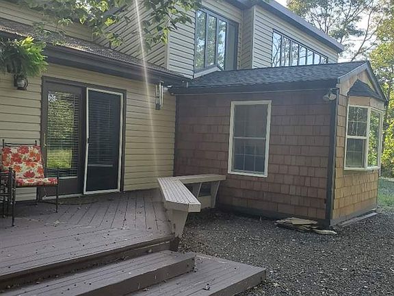 Contemporary rancher,with great room/living room with wall of windows to beautiful wooded lot, Situated on a tranquil county road perfect for privacy and near new bike path. Living room has cathedral ceilings and ceiling fans, sky lights, along with a wood fireplace and beautiful nature views. Living room opens to a very large kitchen area with island, new refrigerator and microwave . A completely renovated dining room with wood ceilings and 3 large bedrooms (a t.v. room can be a possible 4th bedroom), and two full baths. There is a 2 car garage with Auto Door Opener. There is a very large deck in rear of home. This home has had lots of tender loving care and is in pristine shape.
