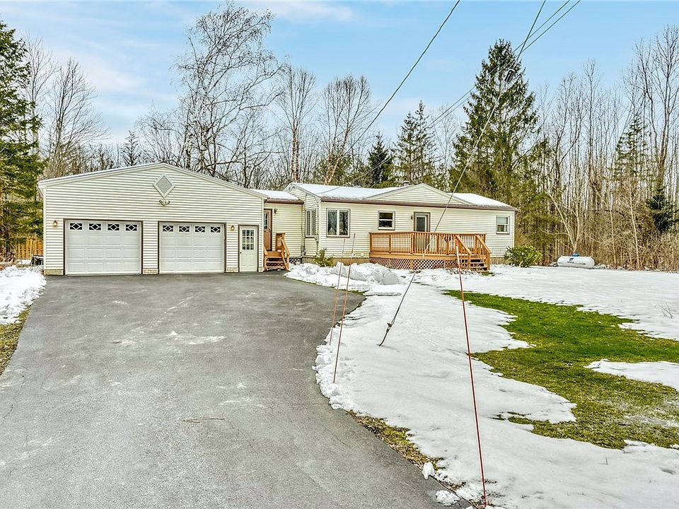 ONE OF A KIND! Updated ranch home in Walworth with Webster Schools. Sits on approximately 2 1/2 acres backing to woods. Huge garage with separate electric. Space for all the toys and potential workshop. Kitchen updated with granite counters and maple cabinets. Beautiful in ground pool 20'x40' and 9' deep. Pool liner and lines completely redone in 2018. New tankless H20 with high efficiency Boiler 2019.