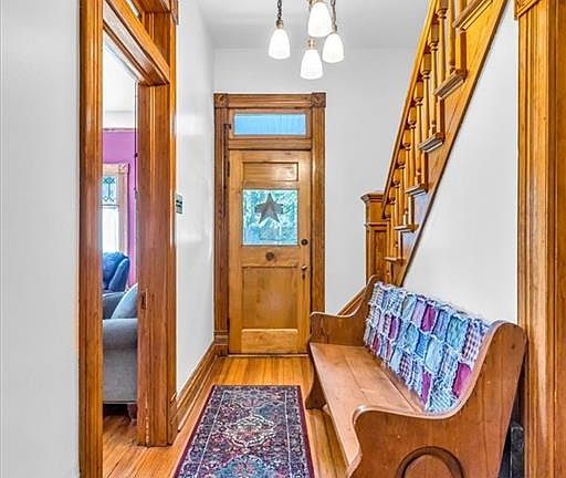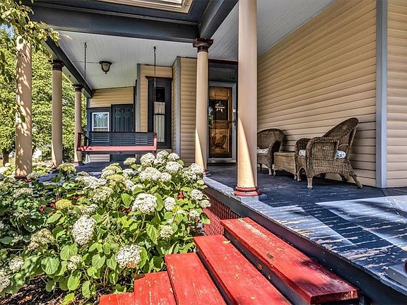 Professional photos coming Saturday! Charming two-story vintage home has been remodeled and updated to accommodate a modern lifestyle but with attention to preserving the historical integrity and characteristics of the time-period. Wood floors throughout the entire home. Nine-foot ceilings on the main level. Lovely, refinished woodwork on the main floor. Original transoms and pocket doors. Beautiful Tiger Oak and Italian marble tile fireplace with electric built-in for those winter evenings in the den/library. Four generously sized bedrooms all on the second floor. Bedrooms, both stairwells, foyer, and the upstairs hallway are newly painted in a creamy neutral color. Two full bathrooms up, both tiled. One full bath down. The laundry room is conveniently located on the second floor with the bedrooms. Front and back staircases. Large remodeled eat-in kitchen with sizable granite island. Spacious formal dining room with swinging door into the kitchen. Lots of usable space and cabinets in the kitchen. Drop zone/mudroom with cubbies and room for extra fridge and recycling. Off the mudroom is a screened-in porch that steps out to a large multi-level deck which includes a bar/outdoor kitchen for entertaining. Large front porch for relaxing. Sunroom/office. Lattice panel fence keeps pets or kids in the backyard. Two-car detached garage. Two HVAC systems, one is a year or so old. The roof is four years old. This is your chance to own a part of local history