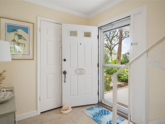 Idyllic 3 BR, 3 bath townhome, recently renovated. Windows and sliders are impact rated. Comfortably updated, including kitchen with newer LG appliances, newer baths, tile floors and all new fixtures. Custom built-ins, and well-maintained. Tranquil garden views with a peek of the river from enclosed porch. Residents of Porpoise Bay enjoy 3 community pools, and the Moorings Club is a short distance, plus access to the Moorings private beach. Two pets under 20-lbs. each with board approval. (Professional photos soon.)