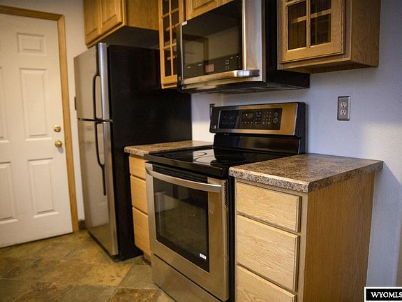NO WIND! is what you will say when you step into this move-in ready home! Nestled at the bottom of a neighborhood rise, the wind barely registers most days. Tons of natural light from the new front window in the living room will highlight the gorgeous hardwood floors and tile throughout the main level. 3 bedrooms up, with a 4th non-conforming bedroom and family room down. New paint upstairs and new carpet downstairs. Newer architectural roof, central air, and free standing gas heating stove, all within 2000