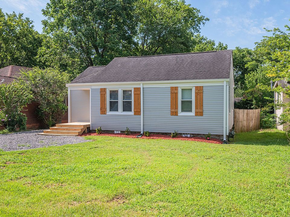 Newly remodeled charming, modern 2 bed 1 bath home ready for move in. Beautiful refinished hardwood floors in all bedrooms, living room and dining/office area. New tile flooring in bathroom, kitchen and laundry area. Kitchen offers new stainless-steel microwave, range, dishwasher, stunning quartz counter tops, cabinets, and tile backsplash. New tub with tile surround, new vanity, mirror and light fixture. New lighting fixtures and ceiling fans throughout. Large, level private fenced back yard and spacious deck. New gravel in driveway.