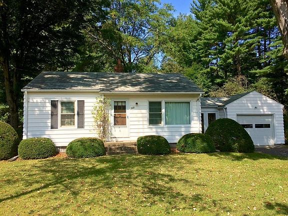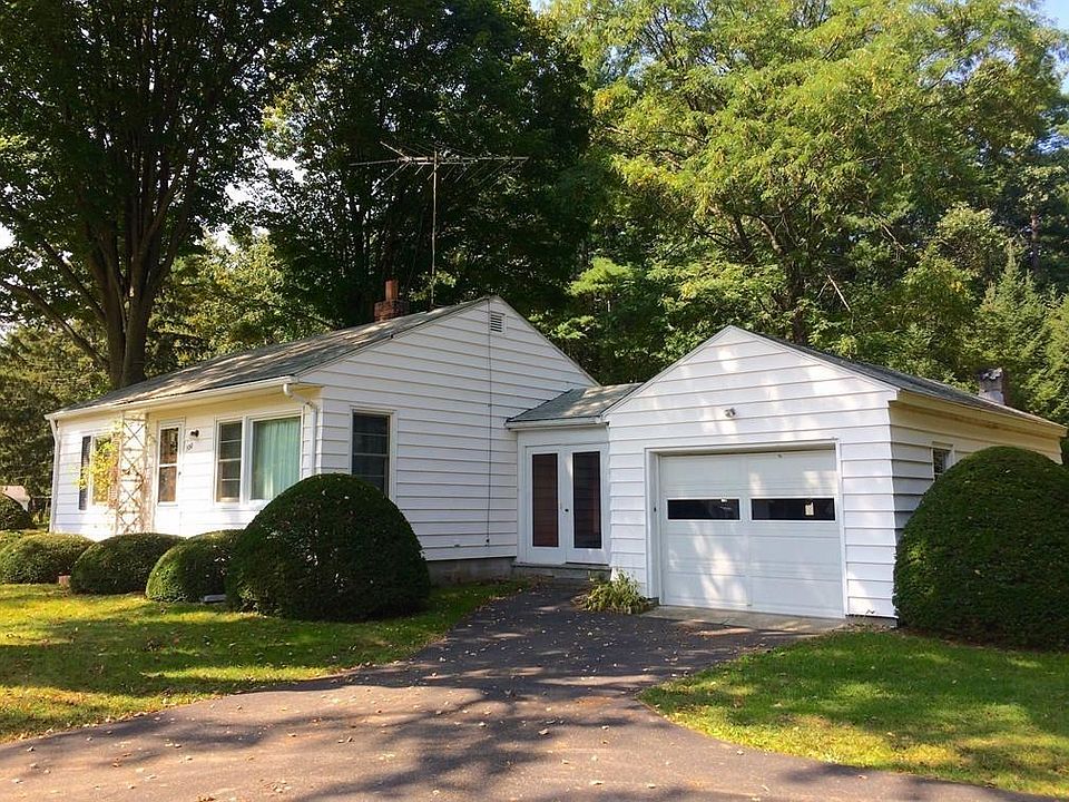 Well maintained, lovingly cared for 2 bed, 1 bath ranch home with enclosed breezeway and attached one car garage. Great starter or retirement home in tip-top shape with expansion potential. EXTRA LARGE LOT offers the possibility for nearly unlimited expansion, or a detached, accessory apartment. Pretty yard goes back beyond the new white picket fence. Simple, attractive landscaping enhances the outdoor space while leaving plenty of room for gardens, recreation, etc. New Anderson Fibrex windows throughout, new water heater, newer Thermo Pride furnace and oil tank. Open plan eat-in kitchen and living room with large picture window lets the sunshine in. Red Oak flooring in both bedrooms. Clean, bright, very usable basement. Very short distances to shopping, schools, Broad Brook nature trails and Fitzgerald Lake. Quick access to highways and major routes. Near everything, yet nicely placed away from the street and neighbors.