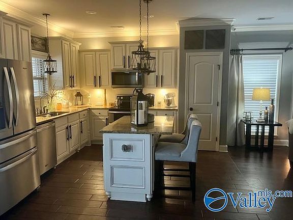 - Features: 10’ + Ceiling, Crown Molding, Eat-in Kitchen, Granite Counters, Kitchen Island, Pantry, Recessed Lighting, Smooth Ceiling, Wood Floor