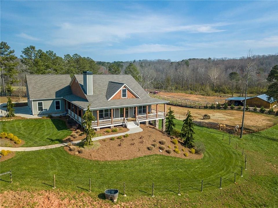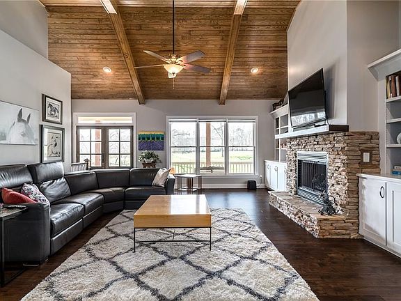 NEWLY built one level ranch w/ wrap porch, terrace in-law suite, 4+ stall barn all on 6+ acres of fenced pasture in heart of horse country! Enjoy views from every room in this beautifully constructed & designed open concept w/ teak hardwd flrs, vaulted tongue & groove great rm. Finished bsmnt offers full kit, bdrm, 1.5 baths, laundry, media rm, & a drive under garage bay or workshop. 4 (5) stall barn w/ tack/feed, bathrm w/ shower, RV hookup, riding arena, run in shed. Chicken coop! Excellent schools. Close to shopping, restaurants, 4 mi to Hwy 575 & new hospital.