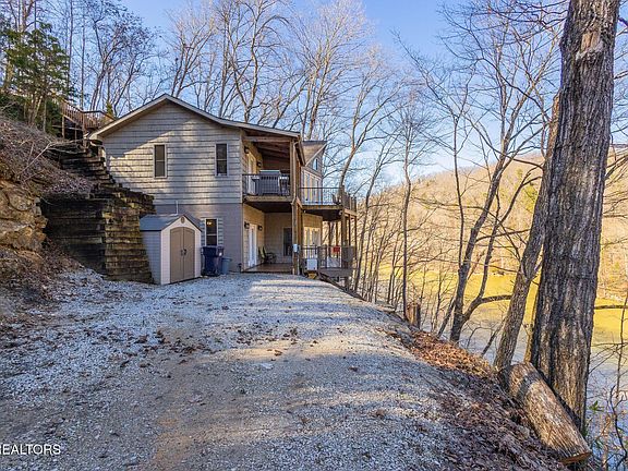 Enjoy unobstructed views and direct lake access from this stunning home in Twin Cove, just minutes from I-75 for convenient shopping and dining. This turn-key property known as ''Hiawatha Hideaway'' boasts a proven rental history and is move-in ready with new floors, fresh paint, and furnishings and appliances negotiable. Ride the tram to the fire pit area, just steps from the amazing double-decker dock, boat lift, two jet ski ports, and kayaks included! This spacious 4-bedroom, 4.5-bath walkout basement home features an open floor plan with expansive composite decks and great spaces for relaxation and entertaining. Three bedrooms are ensuite with private baths. Accommodate 12-16 guests with available queen bunk beds and room for extra beds in the basement. Granite countertops and quality finishes throughout. Don't miss this lakefront retreat, perfect for personal enjoyment or a rental investment!
