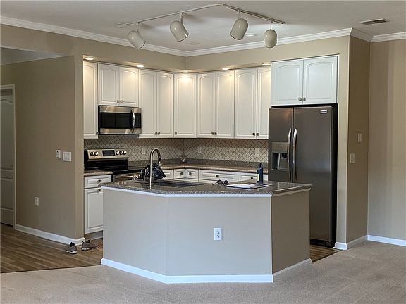 1st floor unit with a rear deck overlooking greenspace. Only 4 of these units in each building, they go fast because of the easy access with no steps. Stunning renovations have been made. This is one of the nicest condos that I have been in! Kitchen has been remodeled in 2017 and features Kraftmaid cabinets, granite countertops, a herringbone backsplash and all newer Frigidaire appliances. Luxury plank flooring in the entry, laundry room and kitchen. Newer carpet in the living room, dining room and bedrooms. Updated chandelier in the dining room . Maytag washer and dryer purchased in 2017 . Crown molding added to the living room, dining room and kitchen in 2017. Airducts cleaned in 2021. Goodman A/C unit in 2018. Furnace checked in 2021. Water heater replaced in 2017. Master bedroom features a closet system. Professional photos coming soon. This community offers an in ground pool, clubhouse with a fitness room and gazebo. The parking lot was recently paved.