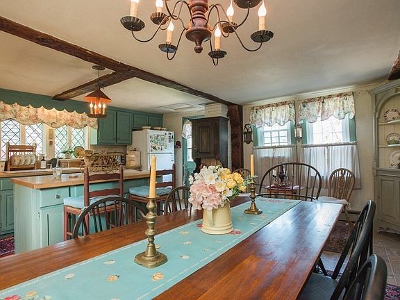 Attention antique lovers! Now available is this first period gambrel center chimney cape built by the Magoun's in 1719. This 300 year old antique sits on almost 1 acre with a beautiful backyard and a large 18th century post and beam barn. A large kitchen adorns the ell of the home with pine cabinets and island. Period décor throughout such as the wide pine floors, wavy glass windows and original woodwork. The original wood paneling and beehive fireplace can be found in the keeping room. A franklin stove and a period chandelier complete the dining room. The office is tucked away with wainscoting walls just off the keeping room. Original wood paneling, built-ins and more can be found in the parlor sitting room. The first floor bathroom includes laundry and is a blank canvas for the next homeowner to renovate. A good morning staircase leads to the 3 bedrooms and a half bathroom upstairs. A shed and two patios can be found on in the yard as well the large barn. No historic restrictions.