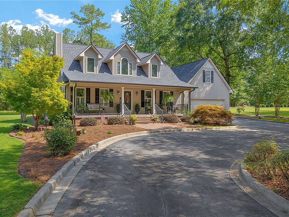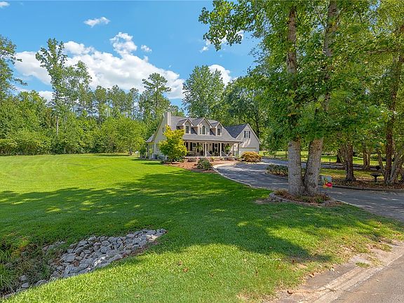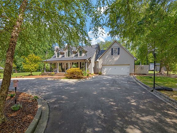 The circular driveway adds convenience and ample parking space for visitors. As you step onto the covered porch you will be welcomed with southern charm. Just bring your rocking chair and porch swing. The back of the home has an additional patio overlooking the sparkling backyard. The beautiful yard boasts a small water feature and a serene creek, creating a tranquil atmosphere.