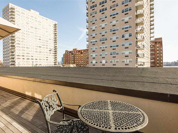 Enjoy NYC Views from this sun drenched penthouse one bedroom with south east exposures. Your corner unit luxury pad with a huge wrap around balcony on 3rd & Hudson awaits you. This one bedroom penthouse gem features brand new kitchen and bathroom renovations, gleaming hardwood floors, high ceilings, 2 skylights, blinds, lots of storage and cabinet space, central air and heat, double organized closets in the bedroom. Elevator building. Laundry on the premises. Your search for having it all next to HOBOKEN PATH just ended. Very easy to show. Same day showing available.