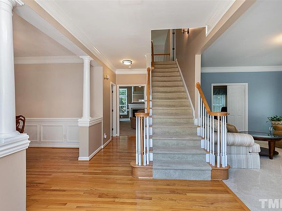Lochmere former model homes timeless design features spacious living, 2 fireplaces & natural light. Kitchen w/beautiful cabinetry, granite, island & breakfast area w/ views to landscaped yard opens to family rm w/ soaring ceilings & your office. Foyer opens to LR & DR. Beautiful main bdrm suite & 3 large bdrms plus oversized bonus on 2nd flr. Custom trim, hardwds, tankless WH, storage in 2 car gar-all the extras! Enjoy Lochmere's lakes, pools, tennis, walking trails & great Cary location. Welcome home!