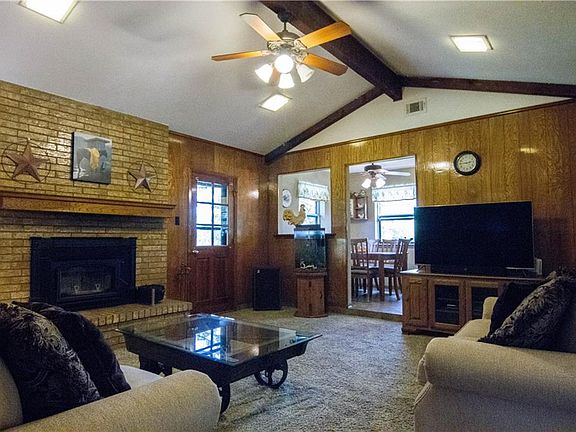 You will absolutely adore this charming Ranch-style home located on almost 2.5 acres of land! Inside highlights include vaulted ceilings completed with trendy ceiling beams, a beautiful brick fireplace, stainless steel appliances, a gas cooktop and tons more! Enjoy the desirable Texas weather on your large covered patio overlooking the garden, chicken coop and Barn-style storage building on your 2.4 acres of land. With this home you get the perfect mix of country and city! Conveniently located less than 10 minutes from the nearest grocery store and 20 minutes away from major shopping and entertainment. This home is a must-see!!