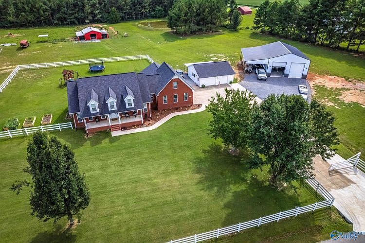 Picture Perfect-Completely remodeled-Main house has 3 BR 2 Baths and large Bonus Bunk Room. Kitchen opens to Family room with gas fireplace - Kitchen has10 ft Island with oversized sink and microwave, beverage center gas range and French door refrigerator. Level 6.9 acres with 28x25 detached Studio Guest(900 Sq Ft)space with full bath, mini Kitchen and Laundry New 36x48 metal building with( 3) 14' doors, Concrete floor, 16x14 loft, RV hook ups(water and 50amp elect) 20x48 covered carport. Level fenced pastures, barn and pond