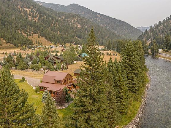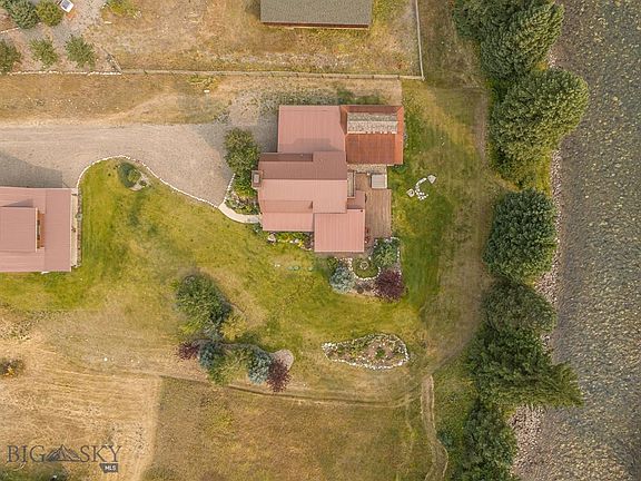 Come see this Gallatin riverfront property located between Big Sky and Bozeman. This beautiful home, guest home, and "hobby house" is located on 1.071 acres right on the river! The main house offers an expansive large lofted bedroom, one and a half baths, wood burning fireplace, and riverfront patio space. Enjoy the expansive vaulted ceilings accentuated by wood timber framing. A true Chef's kitchen completes the main floor featuring a Thermador appliance package, custom counters, multiple sinks, pot filler and many other features to complement your cooking. The guest apartment over the garage boasts large open floor plan, bathroom, and kitchenette. The "hobby house" offers perfect space for your individual hobbies, office area, overflow sleeping area, possibilities are endless. Furnishings and lawn equipment negotiable.