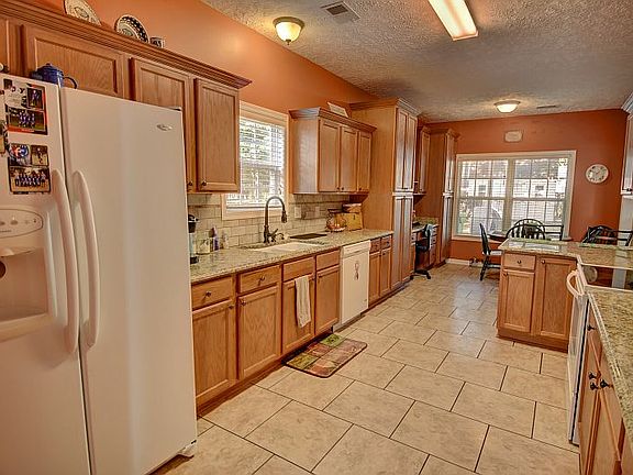 - Kitchen: Bar, Counter Tops-Granite, Eat In, Pantry, Nook, Floors-Tile, Cabinets-Stained, Backsplash-Tiled