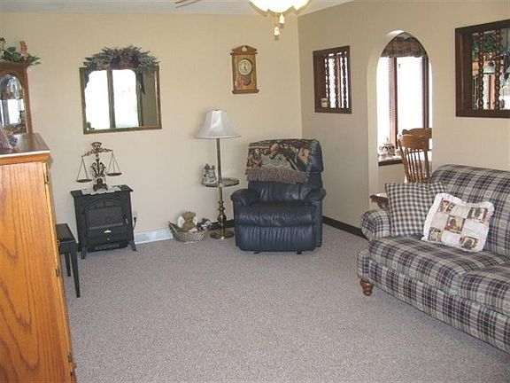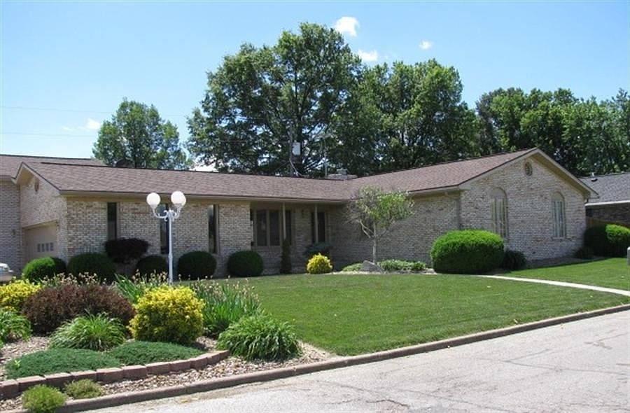 Want a nice in-ground pool? Then this house is for you! Notice the beautiful landscaping as you approach this well-maintained brick ranch in Lawrence Subdivision. The inviting covered porch leads to the front house entry and also to the attached 4 car garage. The front door with leaded glass (and storm door) lead into the foyer. The spacious living room is open to the dining room which has a large bay window overlooking the back yard and in-ground pool. The dining room has space for your formal furniture or can be used as a breakfast room. The kitchen has newer flooring, counters, backsplash, range/oven, and dishwasher. The kitchen is open to the family room which has a vaulted ceiling, floor-to-ceiling stone fireplace with gas log, and patio door to the semi-covered patio, hot tub, and pool area. The master bedroom has a large closet and private bath with newer flooring and with the vanity area separate from tub/shower and commode. The other two bedrooms share the hall bath with tile flooring and newer cabinetry. The lower level features a large rec room with bar (water is available for sink to be added). The other room listed in measurements is currently used as a play room. The laundry/utility room has built-in cabinets and newer flooring and ceiling. The back yard of this property is wonderful. Enjoy the 18 x 36 in-ground pool complete with outbuilding which has been converted into a bath house. It has built-in cabinets and a bath. This back yard area features a covered patio, hot tub, open patio area, water feature and fish pond. Completing the property is a dream-come-true garage. There are four vehicle bays and lots of built-in cabinets for extra storage and workshop uses. The garage has its own heating and air conditioning system also. Two of the garage bays have a 16 ceiling. Includes: window treatments, bath room mirrors, fireplace doors, ceiling fans, kitchen appliances (range/oven, microwave, dishwasher, disposal), shed, cabinets in garage, electric garage door openers & remote for each, hot tub, pool equipment (2 covers, cleaning/maintenance items), fish pond and fountain. Excludes: kitchen and garage refrigerators, washer, dryer. Also includes one year HMS Home Warranty. Per owner: 2012-water heater; 2011-range/oven, dishwasher; 2005-pool pump, pool liner, pool concrete, pool water lines, diving board, fence; since 2004-main floor carpeting (except bedrooms), hall bath cabinet, kitchen counters/backsplash/flooring, master bath flooring, utility room flooring & ceiling, front storm door, 2 sump pumps. Per previous owner: 2003-roof. All measurements are approximate.