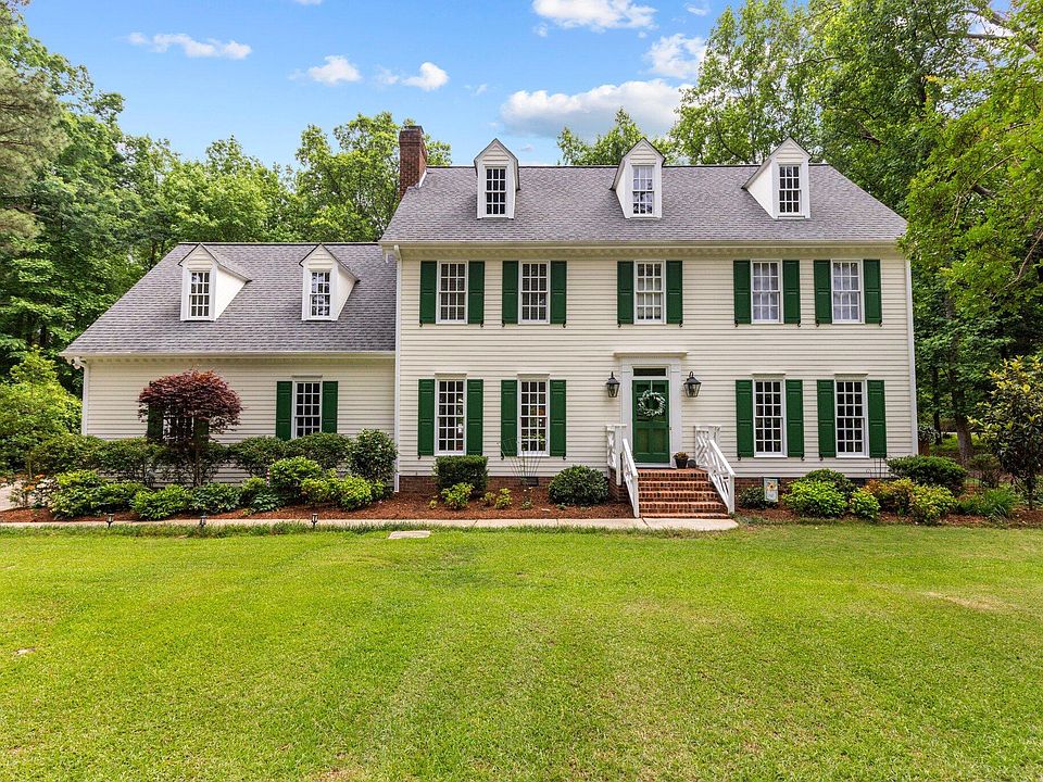 Your dream home with POOL is in the desirable Cobble Creek Subdivision of North Raleigh! This stunning 4 bedroom 2.5 bath home boasts over 3,000 square feet of living space, situated on a 1.5+ acre flat cul-de-sac lot. Enjoy the freedom of NO HOA fees while living in a prime location close to excellent shopping and dining options. This spacious home features a bonus room and a third-floor walk-up unfinished attic that's perfect for storage or future living space.The exterior of the home includes durable fiber cement siding and a side-loading 2.5 car garage. New beautiful landscaping and wooded area add privacy to your own BACKYARD PARADISE! The inviting 38-foot inground swimming pool is 8 feet deep surrounded by a large refinished concrete patio and tastefully designed safety fence. The gentle saltwater chlorination system and NEW POOL LINER will ensure endless hours of fun. Summer barbecues while entertaining friends and family on the spacious deck and creating unforgettable memories under the sun and stars can be yours! Inside, the main level features 9' ceilings, gorgeous oak hardwood floors, and an open concept floor plan that flows from the kitchen to the breakfast area and family room. The amazing updated kitchen is equipped with stainless steel appliances, beautiful white cabinets, center island, quartzite countertops, and a refrigerator that conveys. Crown molding throughout, updated light fixtures, and lots of natural light add to the home's charm. The family room features a wood-burning fireplace, large mantel, and wainscoting. Additional main level highlights include a large office, formal dining room, foyer with hardwood tread stairs, and an updated powder room. The second floor offers carpeted bedrooms, including an updated primary bathroom, an updated hall bathroom, and a laundry room with a washer and dryer that convey. The NEW HVAC system on the second floor ensures optimal comfort. This home combines elegance and practicality, offering everything a family needs for comfortable living and entertaining. Don't miss the opportunity to make this beautiful house your forever home! Contact us today to schedule a private showing.