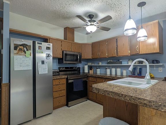 Adorable 3BR TURNKEY home with lots of improvements PLUS a paved driveway leading to large 24x32 pole barn built in 2004 with 10' overhead door, shelving and a power garage door opener! 2021 updates include attic insulation, skylight, gutters, electric stove; well pressure tank, switch and gauge. 2022 updates include wood kitchen shelves, kitchen faucet; and water heater. 2023 updates include kitchen/laundry lighting; 1stBR closet organizer, new dimensional shingles, seal coated driveway, ceiling fan in 1stBR. 2024 updates include front deck railing; updated bath cabs and flooring. 2025 updates include rear deck railing. Not to mention the maintenance free, well-maintained, fenced yard and JUST MINUTES FROM HIGGINS LAKE SOUTH STATE PARK.