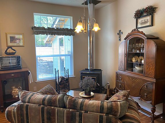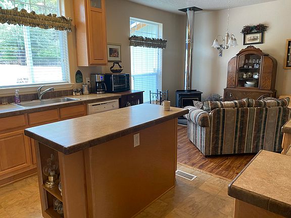 This 5+ acre flat usable property and newer 2010 manufactured home will certainly WOW you! The location itself is delightful.....cross the creek to get there and then you have end of road privacy. The front covered porch is super welcoming and the floorplan is very open and inviting. With 3 bedrooms, 2 baths and a small hobby or exercise add on there is much to love here. There is a large two story barn/shop featuring tall ceilings, work bench and a 2nd story that could be finished to a guest unit. A second older mobile is included in the sale. The property is up against BLM and has creek frontage. In an area of nice homes. Take a look today! Buyer to do own due diligence.